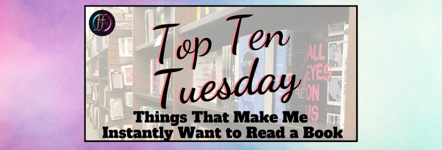 Top Ten Tuesday used to be a weekly post hosted by The Broke and the Bookish, but was moved to That Artsy Reader Girl in 2018. This week’s prompt is about book turn-offs, and I couldn’t think of many, so I’m going to use last week’s prompt instead to talk about things that immediately make me want to read a book.